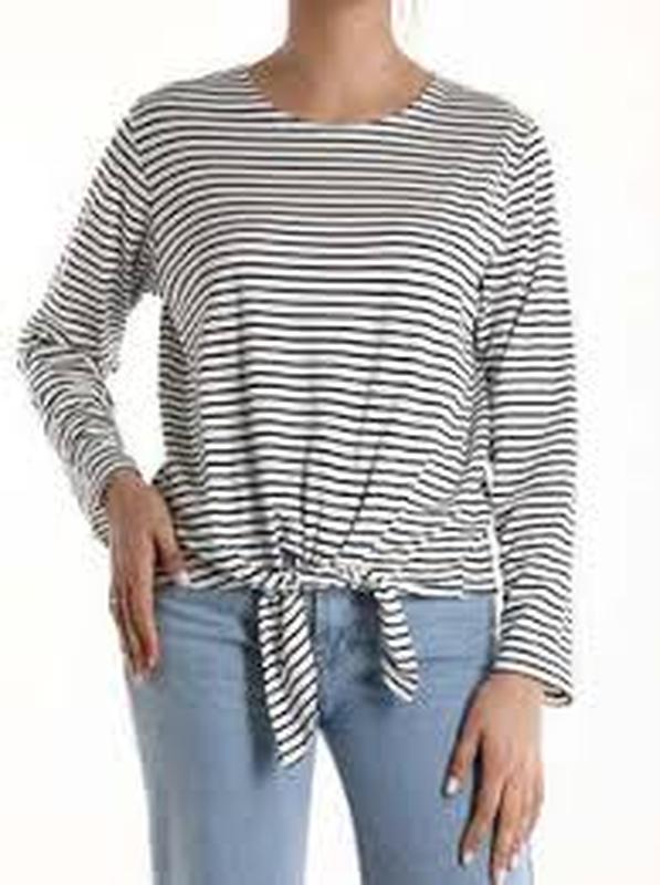 Красивенная блузка с длинными рукавами. Состояние новой вещи,нет основной бирки,в носке не была,поэтому цена снижена от реальной. Полоска бело-темноголубая. Размер 44/46 меряйтесь по замерам,материал очень приятный к телу,ещё тянеться хорошо Длинна 55 Плечи 48 Пог 59 Пот57 Рукав 64 Фасон-свободный Очень стильная!!!!! Первое фото для визуализации схожей модели.