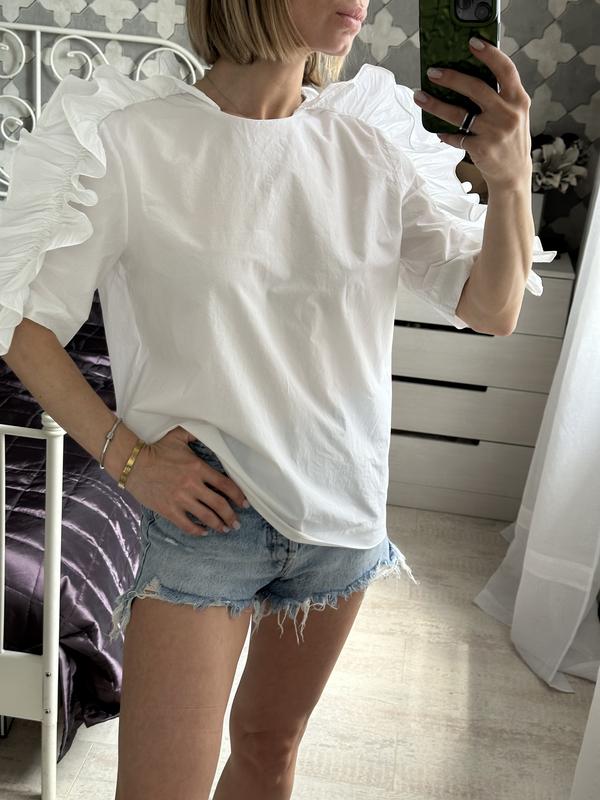 Стильная блуза с воланами на рукавах от бренда COS. “Хрусткий» хлопок. Стан идеален. Размер М.(на фото одет на S)