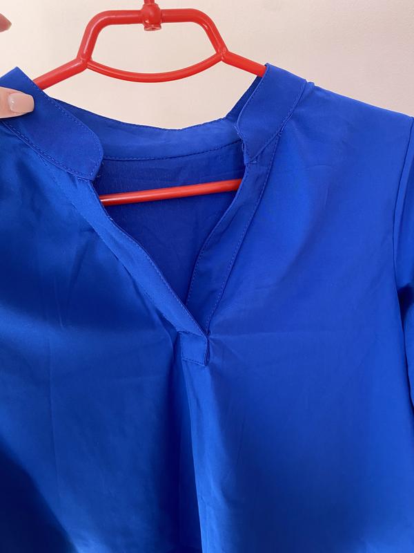 Синяя коттоновая блуза отлично подойдет к рабочему наряду
