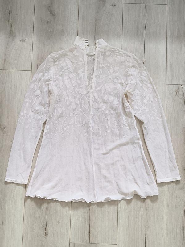 Женская блузка прозрачная с цветочным принтом, на пуговицах у шеи