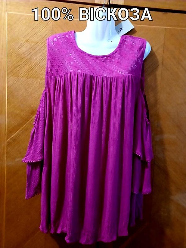 Красивая, яркая блузка с бумажной бирочкой от бренда TU. Основной материал 100% вискоза. Материал жатка, приятный на ощупь. Кружево 82 %вискоза, 18% полиамид. Открытые плечи. На бирочке размер 20. Замеры делали с середины. Полуобхват груди 72 см, по низу 78 см. Ширина в плечах позаду 40 см. Рукав длина от плеча 28 см, от подмышек 16 см. Бицепс полуобхват 22 см. Спереду коротше. Высота по спине от плеча у горловины 80 см, от подмышек 40 см, по переду от плеча у горловины 75 см, по переду по середине 68 см. Камера не совсем верна передает цвет, ближе всего 7 фото. ❗Отправляем после полной платы на карточку Приватбанка. ❗Доставка Новой или Укр ( +5грн по упаковке) поштука за средства покупателя. Можно оформить доставку здесь, с указанием, НА КАРТОКЕ ПРОДАВЦЮ, ❗Наложенного платежа, безопасной оплаты, возврата и обмена нет. ❗Карточку просить только в том случае, когда уверены, что покупаете товар. *10 216*