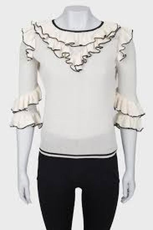 Стильная блузка с рюшками известного бренда. Состояние идеальное, без дефектов. Бирка срезана с составом,материал похож на смесь вискозы с шелком. Размер указан 1. Длинна от плеча 54 Плечи 38 Рукав 44 Пог 46-57 Пот 40-54 По низу 28-50 Замеры сделаны в спокойном состоянии и в натяжке. Доставка Укрпочта и Нп, безопасной оплаты нет, читайте