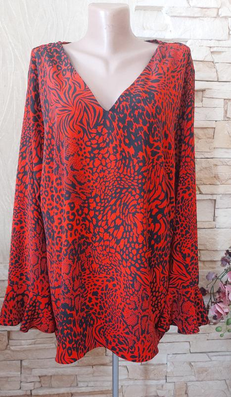 Очень красивая блуза большого размера.Стан новой,ткань и пошив качественные.Подойдет на пышный бюст.Есть вытачки долж.76 пог.65 поб69 рукав 63 плечи 44