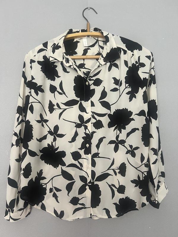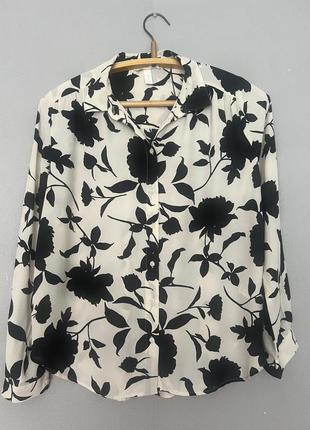 Блузка шифоновая белая в черные цветы, Груди-120см Талія-120см Бедра 120см Длина-70см