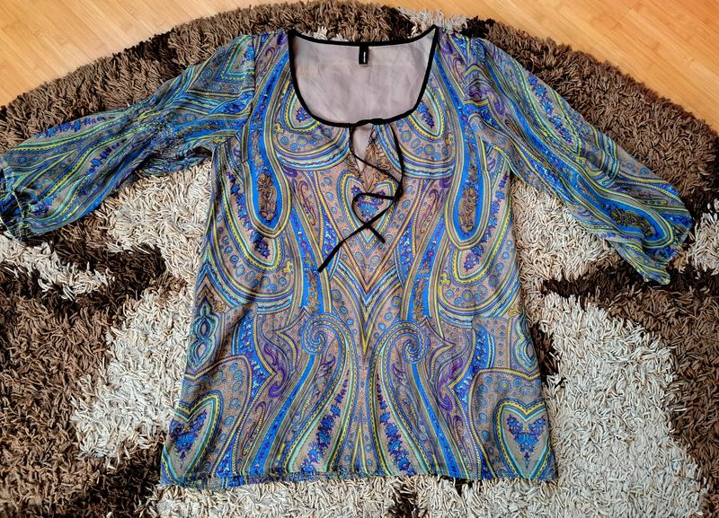 Длина 77см,ширина под руками 55см, ширина по плечам 40см,длина рукава 52см.Невесомая приятная ткань