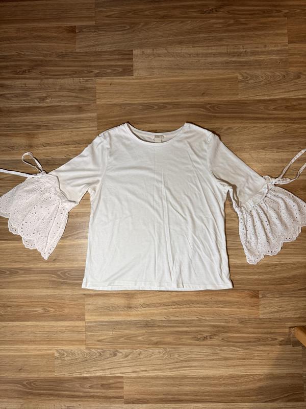 Красивая блуза, 100% коттон, рукав 3/4 с прошвой, размер М (выносится не приталено). Бренд H&M.
