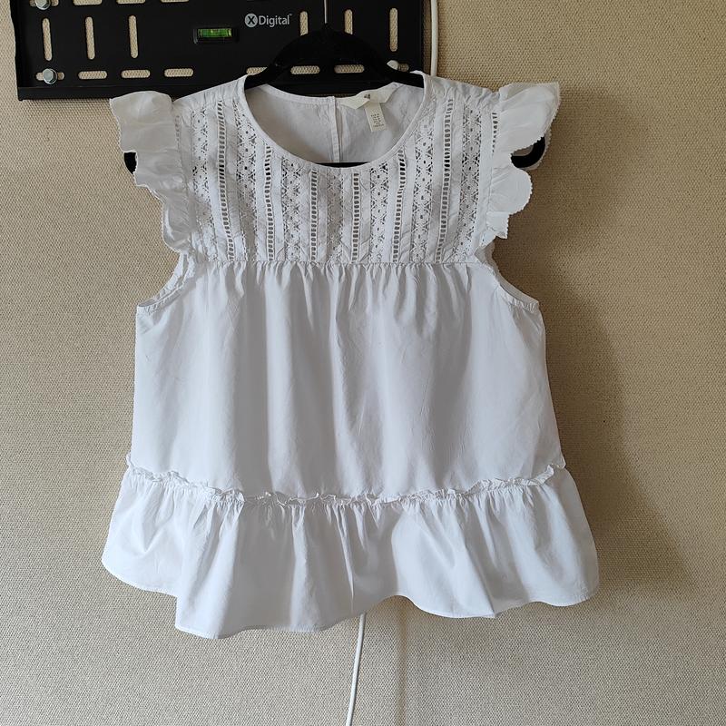 Белоснежная коттоновая блуза с рюшами.Пог-49, длина-58.