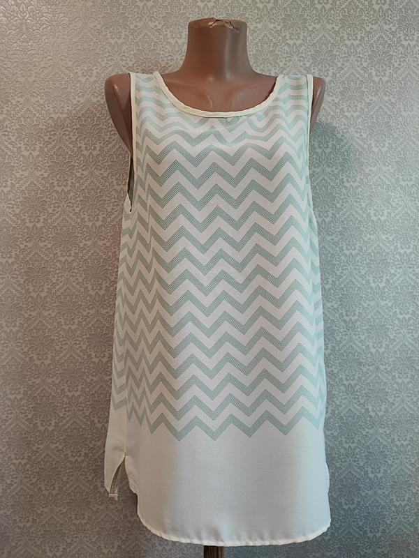 Состояние новой вещи, цвет светло бежевый с зеленым орнаментом. Довжина 70 см, груди 50 см, низ 56 см.