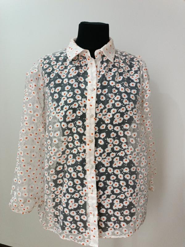 Полупрозрачная блуза с нежным принтом,рукав внизу на резинке пог 58 длина 65 рукав 50 плечи 36