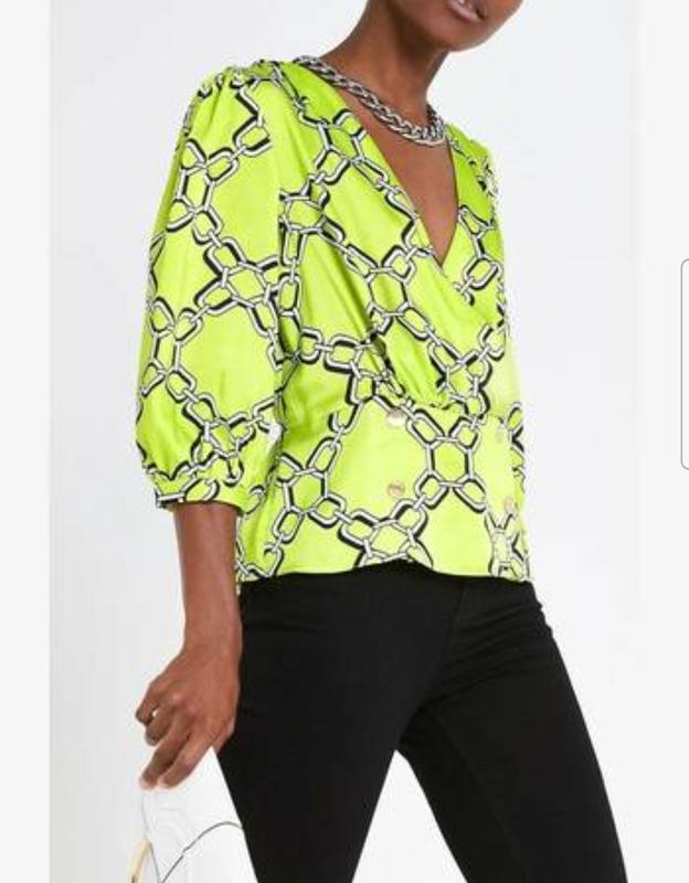 Трендовая кэжуал блуза, яркого неонового цвета с стильным принтом цепей. В идеальном новом состоянии без бирки на размер S