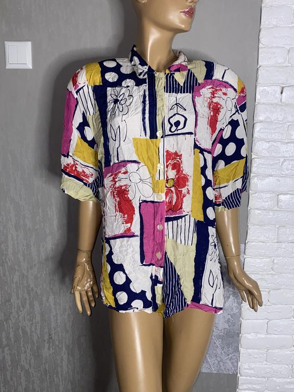 Винтажная блуза большого размера блузка в интересный Принт винтаж. Длина 70см, плечи 48см, ПОГ 62см, ПОБ 60