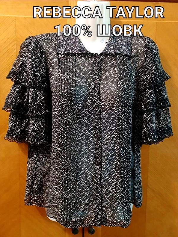REBECCA TAYLOR является наверняка самим известным новозеландским дизайнером, а коллекции ее бренда уже много лет пользуются огромным спросом в Америке, Японии и странах Европы. Среди постоянных почитательниц REBECCA TAYLOR числится множество модниц, среди которых Дженнифер Лопес, Кейт Уинслет, Ума Турман, Кейт Бланшет, и конечно, Сара Джессика Паркет, во многом благодаря которой ее героиня из, Секса и города, постоянно появлялась на экранах в коктейльных платьях от REBECCA TAYLOR. Стильная и красивая блузка. Материал 100% шелк, тонкий, просвечивает. Рисунок в мелком горошек. Рукава с воланами, украшенным изысканным кружевом. На бирочке размер 6. Замеры делали с середины. На бирочке размер 6. Замеры делали с середины. Полуобхват груди 48 см, по низу 54 см. Ширина в плечах позаду 34 см. Рукав длина от плеча 32 см. Высота по спине от плеча у горловины 58 см, от подмышек 32 см, по переду по середине 49 см. ❗Отправляем после полной платы на карточку Приватбанка ❗Доставка Новой или Укр по почте за средства покупателя. ❗Наложенного платежа, безопасной оплаты, возврата и обмена нет. ❗Карточку просить только в том случае, когда уверены, что покупаете товар. *10 263*