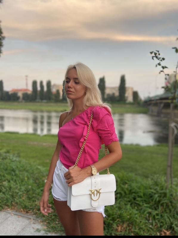 На 1 плечо, очень эффектная, цвет малиновый