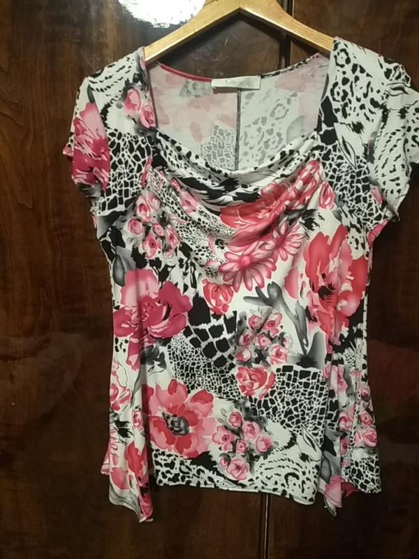 яркая блузка ПОГ 46, ПОТ 45, ПО бедер 55, длина 57