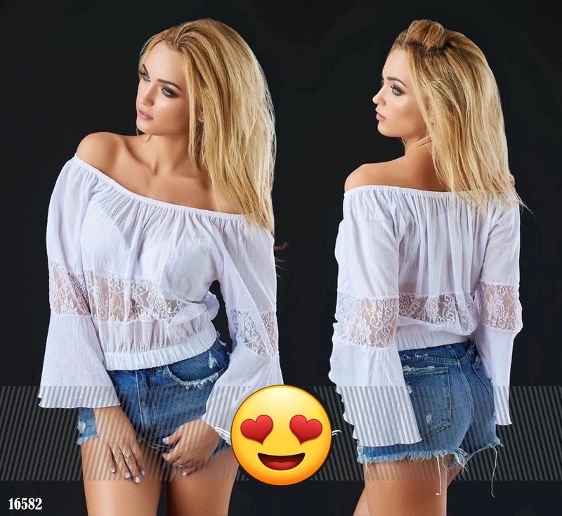 Модель 2055 блуза-топ новая Цена: 250 грн Размеры: 42; 44; 46 Ткань: хлопок Х/Б «ЖАТКА»+ гипюр - 42 - ОГ 95 см Длина 44 см - 44 - ОГ 100 см Длина 47 см - 46 - ОГ 105 см Длина 50 см код1705(диа)