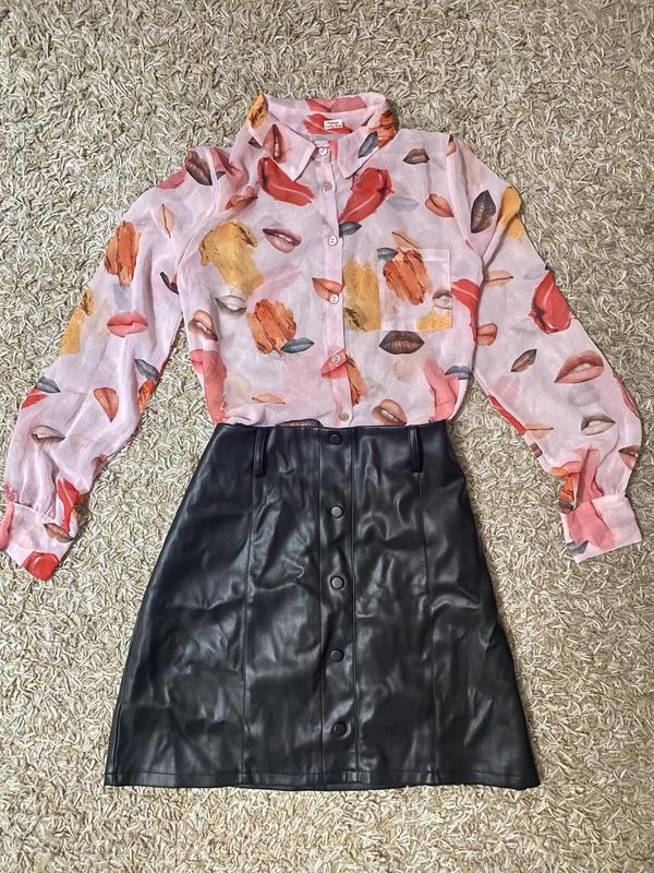 Рубашка размер с/м, шифоновая, с принтом, Юбка кожаная размер м-л Можно отдельно покупать Рубашка 300 грн Юбка 450 грн
