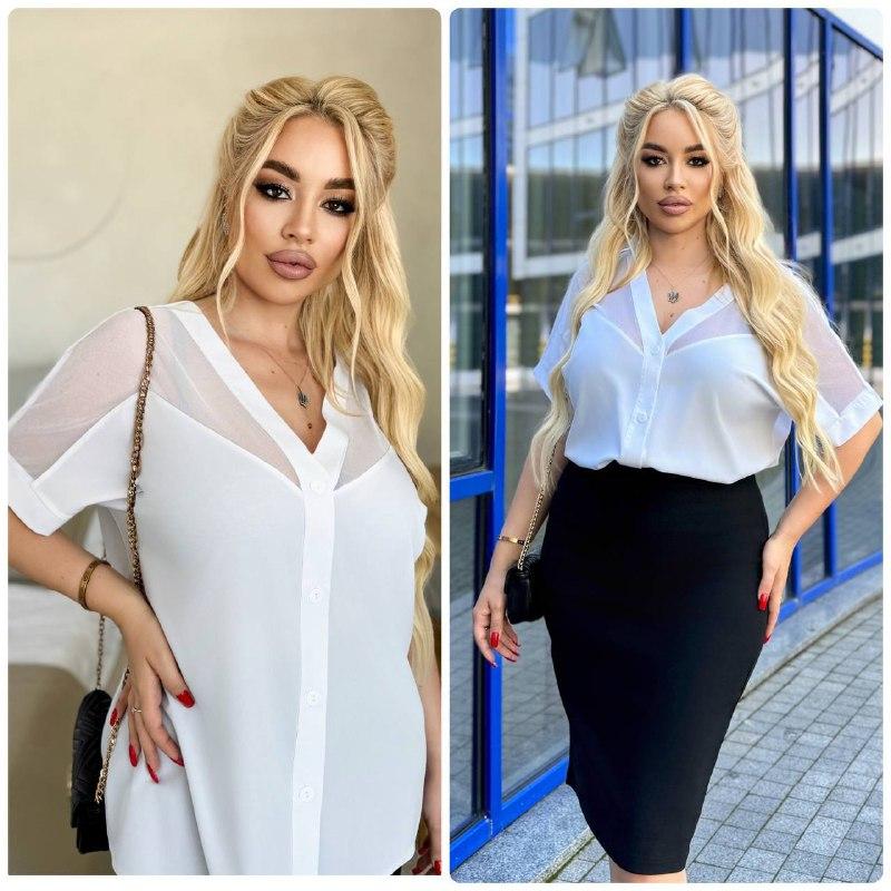 Блузка з цікавим дизайном Якісна натуральна тканина) Стильна, сучасна Розміри : 48-52,54-58 Тканина: супер софт + сітка Колір : білий та чорний ins