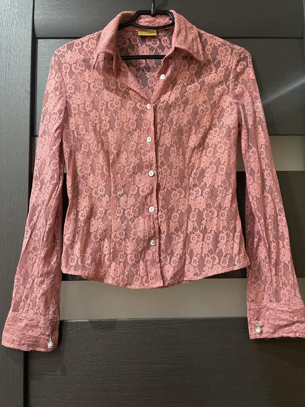 БЛУЗКА НОВА ГАРНЕ МЕРЕЖИВО РАЗМЕР XS Ог-45 От-40 Длина рукава от шеи-76 Длина-57 200 гр