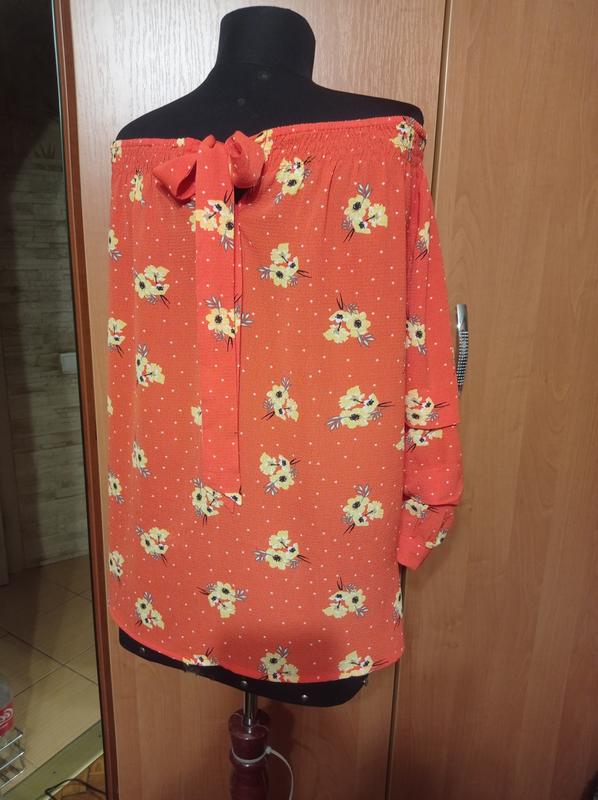 Яскрава, легка, помаранчева блуза льоля в ідеальному стані, на відкриті плечі, ззаду широка зав'язка, об'ємні, призібрані рукава 3/4. Розмір 20/48, дивіться заміри: Довжина - 54см від резинки; довжина рукава - 40см від резинки; ПОГ - 61см. Фото зроблено на манекена 34 розміру, майте це на увазі. Можете вибрати до купівлі собі подарунок (лоти "Подарунок"), дивіться мої оголошення. Повернення або обміну немає, будь ласка, обдумано робіть покупку. Оплата і доставка: Оплата на карту ПриватБанк Ощадбанк - 100%. Якщо користуєтесь "Безпечні" (через Шафа), прошу втричі уважно продумувати покупку, задавати питання, просіть фото, щоб не повертати, зобов'язуючи продавця сплачувати доставку вам і назад, давайте поважати один одного! Відправка Новою поштою, Justin, і Укрпоштою. Пересилка за рахунок покупця.