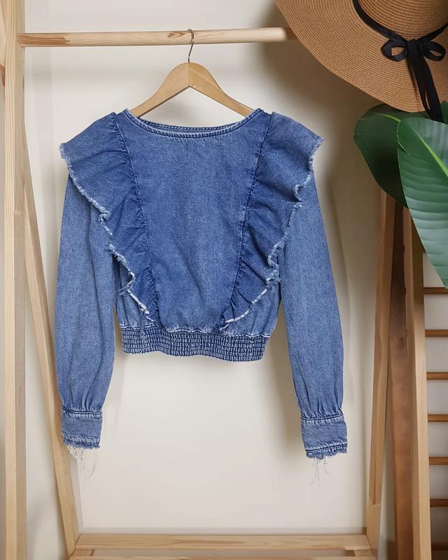 СТИЛЬНАЯ блуза, джинс, от BERSHKA размер S. Стан ИДЕАЛЬНЫЙ. Длина- 48см, полуобхват груди- 48см. 395 грн.