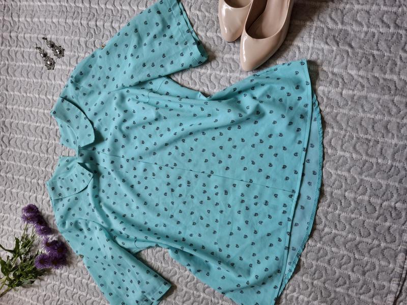 Блуза женская в цвете тифани. Лекожи приятный материал. На рукавах есть шлевки. Заміри на фото.