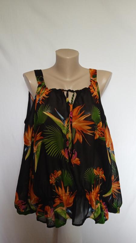 очень красивая, яркая, длина65, пог58,пояс на резинке в спокойном состоянии полуобхват40 тянется62,рукав от горловини64,голенные плечи