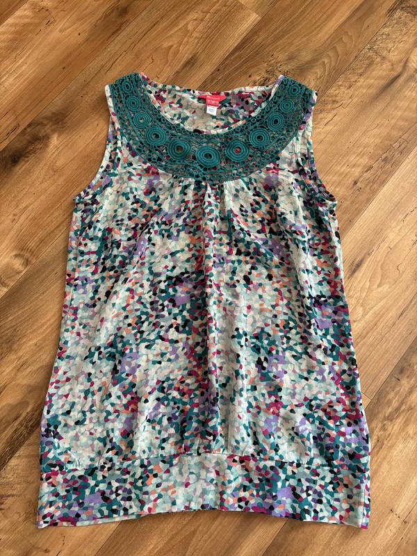 Майка длина 66 см, ширина по груди 45 см, ткань шифон