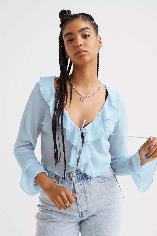 прозрачная голубая блуза на завязке h&m💎 • размер s 📏полхват груди -42 / длина - 43 / рукава - 67 • состояние идеально