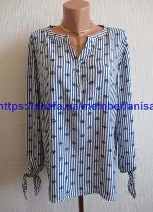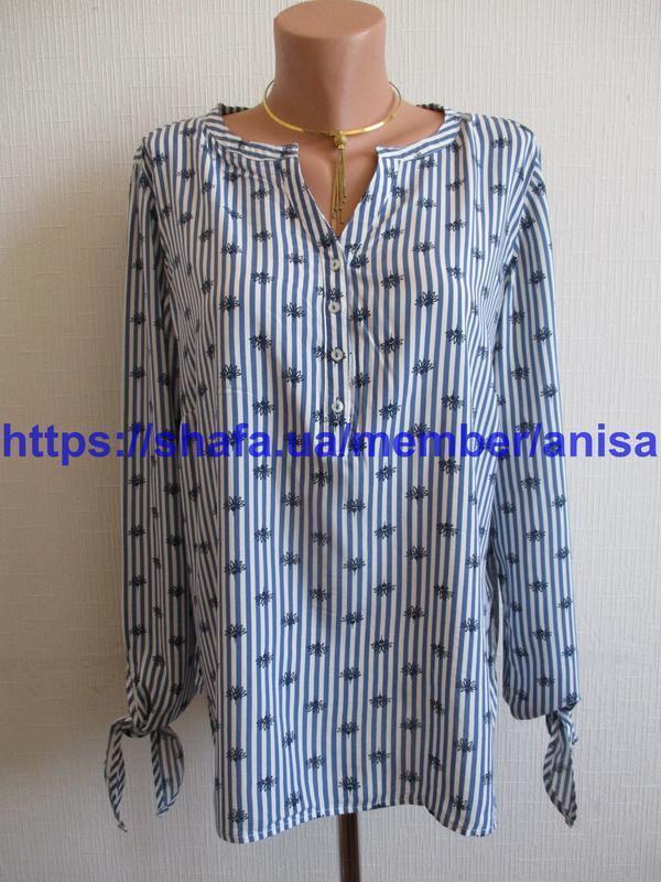Sale ! Натуральная вискозная блуза в полоску tcm tchibo Блузка новая, но со срезанными бирками, сток Нюанс: брак принта, возле плечевых швов спереди непрокрас – белые полоски, смотрите последние фото. Из-за этого снижена цена. Срезана бирка с размером, ориентируйтесь на замеры. Носится свободно Бирка с размером срезана, по замерам 44-46 евро /50-52 рус., но лучше ориентируйтесь на замеры Замеры изделия (не тянется): ПО груди - 59 см ПО талии - 60 см ПО бедер - 62 см Ширина по плечам - 41 см Длина рукава - 59 см Длина блузки от плечевого шва - 63 см ............................. Состав: 100% вискоза (от Lenzing) (бирка срезана, информация с официального сайта) .............................................. Безпечною оплатою і наложкою даний товар не відправляємо Возврата и обмена нет! ......................................... SALE! При покупке 2-х и больше вещей - скидка 10% *** Если Вы делаете заказ через кнопку "Купить" скидку сделать не смогу, поскольку в этом случае сайт снимает с меня процент за продажу с полной стоимости вещи, указанной в заказе. Для получения скидки делаете заказ через кнопку "Задать вопрос"! ....................... Доставка: Отправка после 100% предоплаты на карту. Доставка: Новая Почта, Укрпочта (оплата при получении) . ВОЗВРАТА И ОБМЕНА НЕТ! В каждом объявлении есть детальное описание и замеры вещи. Как сядет на Вас вещь, я предугадать не могу, поэтому делайте заказ обдуманно, сверяйте свои параметры с указанными замерами. Я с удовольствием отвечу на все интересующие вопросы и предоставлю дополнительные замеры и фото ДО оплаты и отправки товара