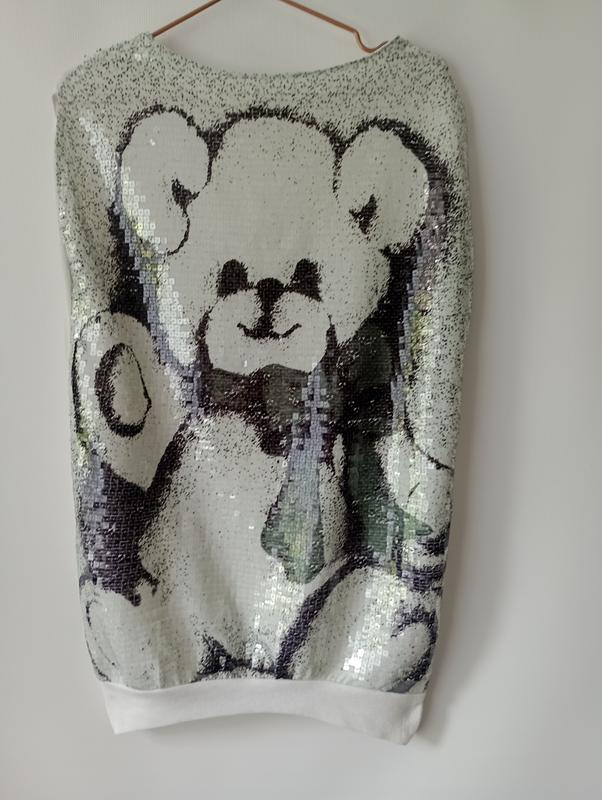 Футболка, спереди паетки, спинка вязанный трикотаж. Молочный цвет. Отличное качество!