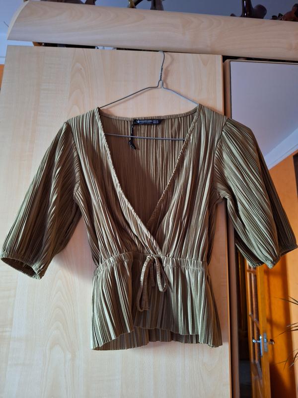 Оливковая гофрированная блуза топ от Stradivarius нова