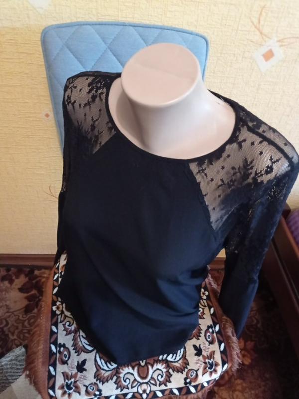 Сток, без берки.На рукавах вставки из крупыва,ззади на завязке.Легка простая ткань,100% вискоза.По этикетке размер Xl, но смотрите по замерам.Длина-59см, ширина между плечами -41см,пог-51.5см, ширина -53см,рукав+пче от горловини-7ммм