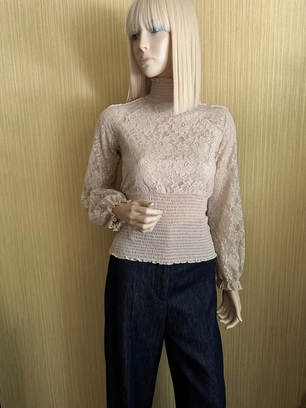 Блузка из кружевной ткани на подкладке. Все ткани очень мягкие и приятные к телу. Резинка хорошо тянется. Сзади на потайной молнии. Состояние идеальное. Размер указан XS