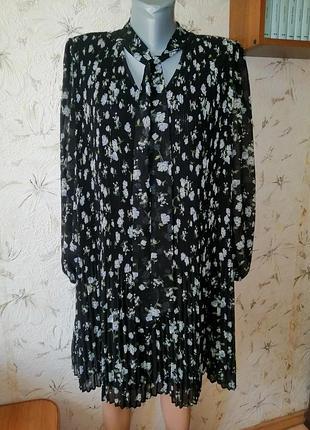 Размер на фото 2, смотрите внимательно замеры. Стан идеален, без дефектов. Ткань шифон гофре, тонкая, не тянется, 100% полиэстер. Есть подкладка шифоновая. Цвет черный. Замеры: длина от верхней точки плеча до низа 87. длина рукава от плечевого шва: 57. длина рукава от горловины: 66. полу охват проймы: 24. полуобхват рукава в верхней части: 21. полуобхват груди (измеряла по подкладке) 50. полу охват талии (измеряла по подкладке) 58. полу охват внизу (измеряла по подкладке) 69. ширина между плечами швами: 38. 60