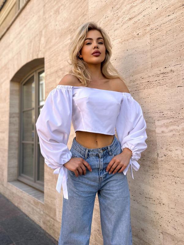 Ткань: софт плотный Отличное качество! Размеры: 42-44, 46-48 Цвета: черный, белый Шикарная блузочка с пышными рукавами. Перед двойной (не просвечивает).