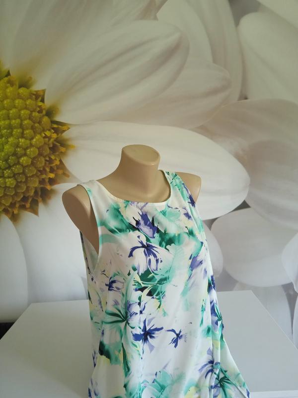 Стильная блузочка без рукавов с оригинальным контрастным рисунком. Интересно сочетаются цвета. Легкая и удобная. Приятная на ощупь. Тонкая, но плотная ткань. Не просвечивается. Практически не тянется. Ложится свободно. Фасон прямой. Сбоку украшена рюшей. Имеются размеры
