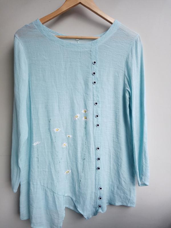 Блузка ніжно голуба котон ромашки. Тканина тоненька. Пог 58 см, довжина 70 см