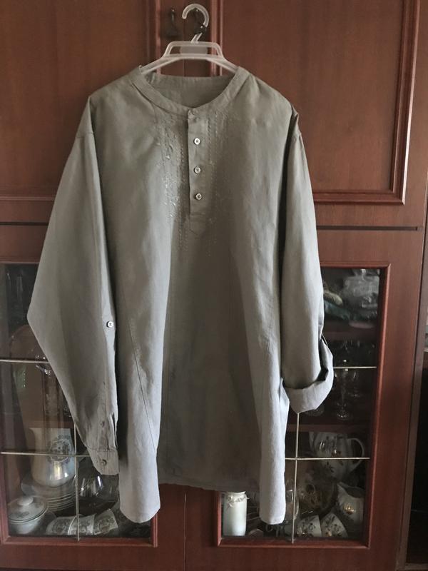 Женская рубашка - туника с вышивкой известного тренда Lee Cooper большого размера ХХL : ПОГ 71, длина 87, длина рукава 63, модного цвета хаки, 55% лен, 45% хлопок