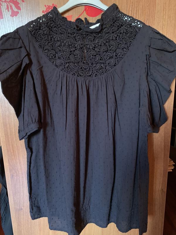 Красивая хлопковая блуза от F&F Состояние новой вещи Пышные рукава-буфы На груди(декольте) красивое кружево 100% хлопок Размер 16 ( замеры по запросу) Смотрите и другие мои объявления