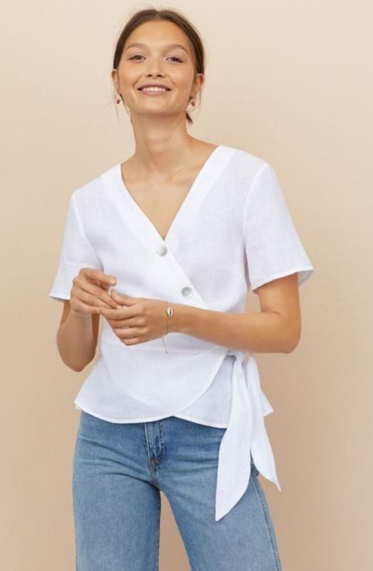 🌿белая блуза H&M с пуговицами, ткань 100% лен Размер 38 Замеры ПО груди 45 см, длина 58 см Размер:40 Замеры:ПО груди 47 см, длина 60 см