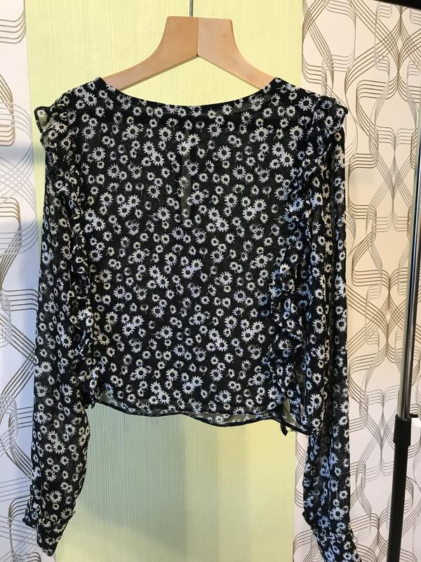 Мылька легкая укороченная блузка в цветочный принт. По бокам - рюши, как спереди, так и сзади. Рукав на манжете на двух пуговицах, над манжетом тоже рюшечка ПОП 42 ПОГ 52 Длина 43 При необходимости дам дополнительную информацию Больше блузок на моей странице