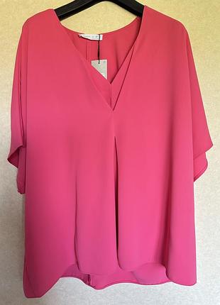 Эффектная летняя блуза 👚 яркого малинового цвета. Спереди двойная сборка (фото), рукав кимоно. Новая (с этикеткой). Размер L (но подойдёт и на XL-XXL).