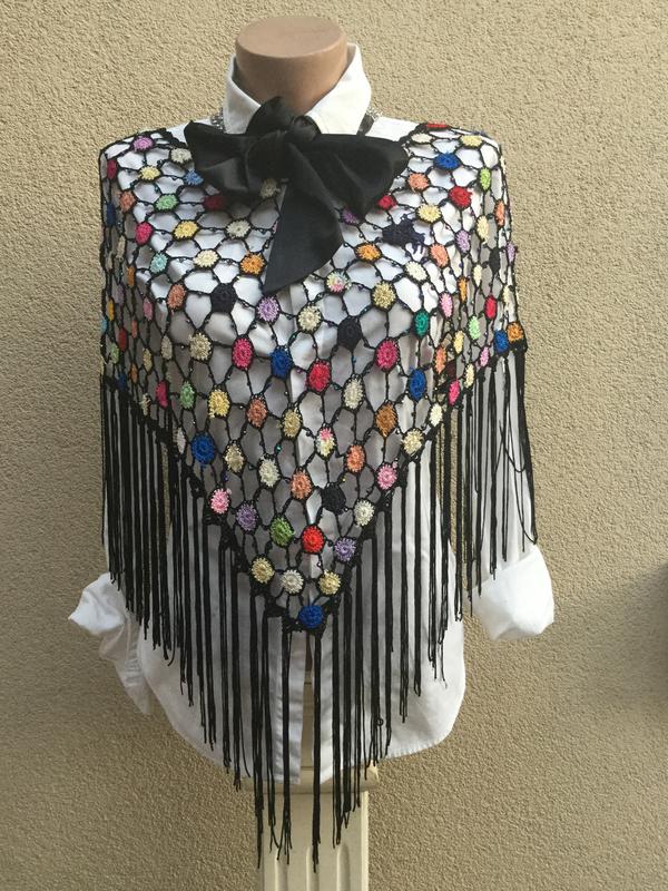 Ажур,кружевная,вязанная накидка-пончо с бахромой,этно,бохо стиль,шерсть