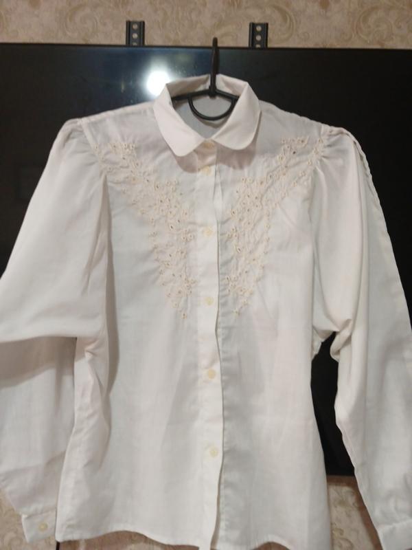 Блуза размер s Очень красивый крой удобно как для повседненого так для событий.Вышит машинным швом -гладкью цвет кремовый
