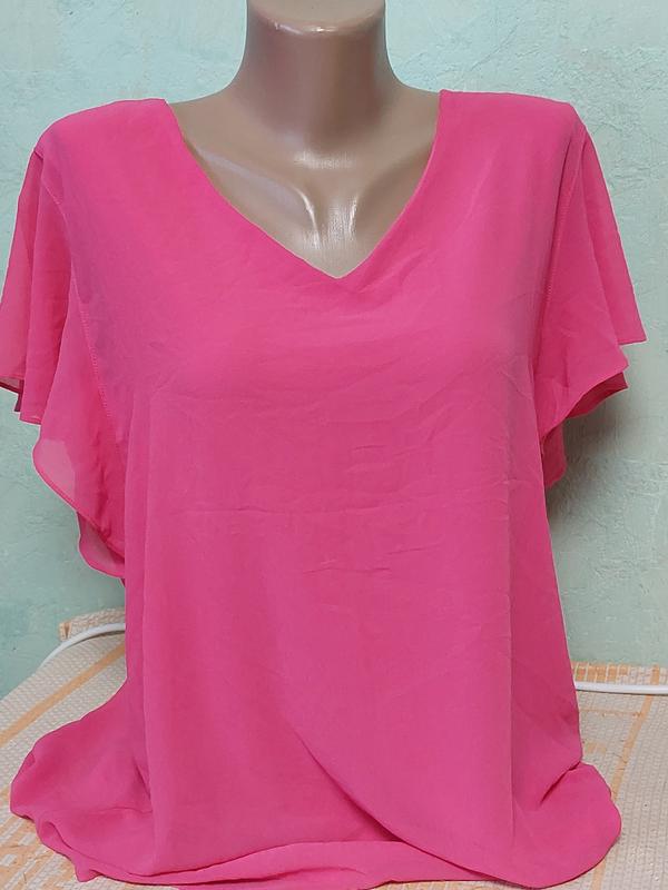 легкая летняя блуза в идеальном состоянии, длина по спинке 63см, ПОГ 51см, ширина плеч 43см подкладка вискоза, верх полиестер бирки с составом и размером нет. цвет насыщенный малиновый