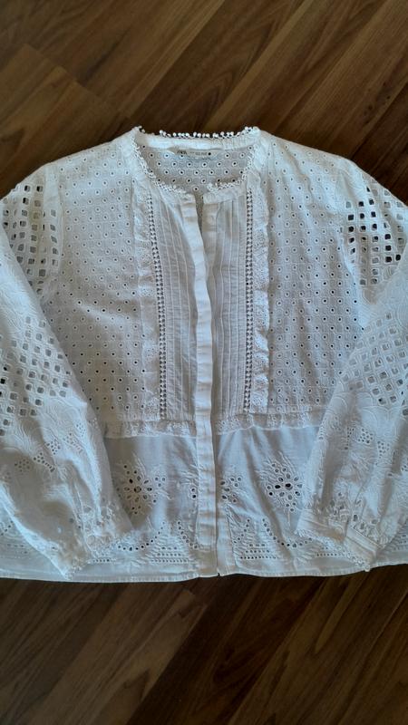 блузка из прошвы, очень хрупкая и нежная, пог 54см,длинная 59см,плечи 41,длинная рукава 57,5см