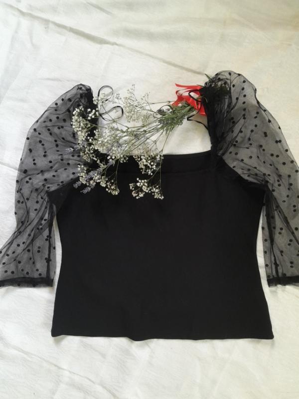 Шикарная блуза с красивыми рукавами, неотразимая сетка в горошек, основа как трикотаж тянется пог47 пот43 поб48 длина40,