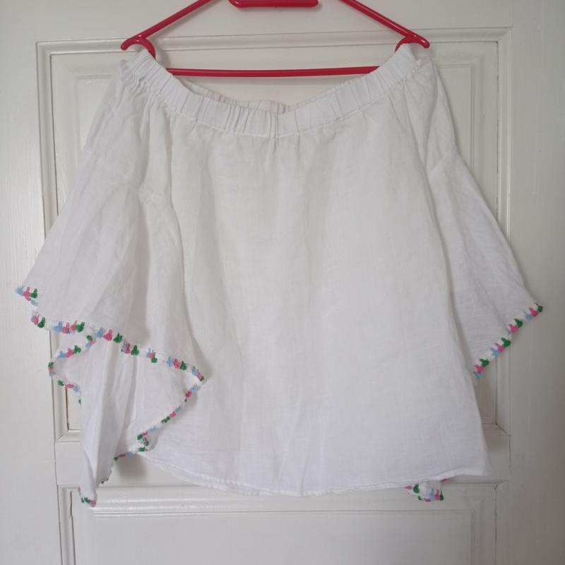 Льняная летняя белая блуза р.S вдягала два раза, на ог 98 рост 171 малолетия