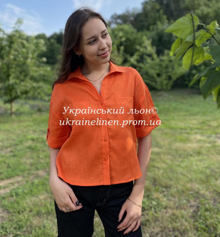 Блуза бонжур помаранчева, галерея льону, сорочка льняна, 44-52рр.