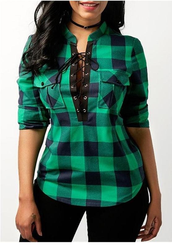 Блузка из декольте на завязках и нагрудным карманами